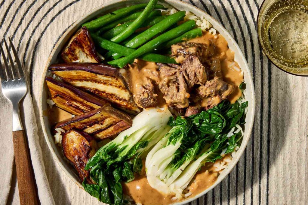 Kare-kare is a hearty Filipino stew featuring tender beef in a thick, savory peanut sauce with a medley of vegetables